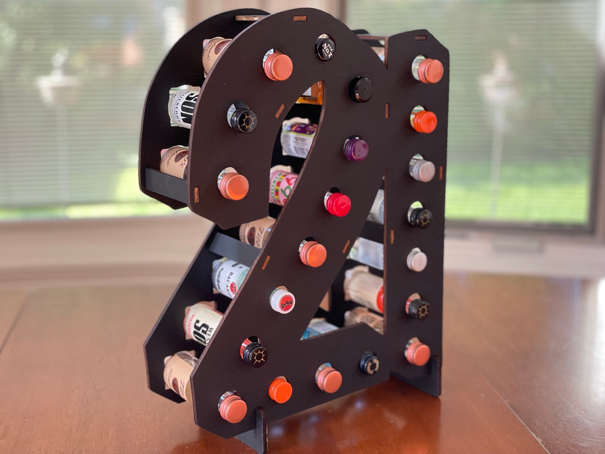Unique liquor bottle holder birthday gift! This stand comes fully assembled. Fits most mini bottles except for uniquely shaped (Ex. Fireball).