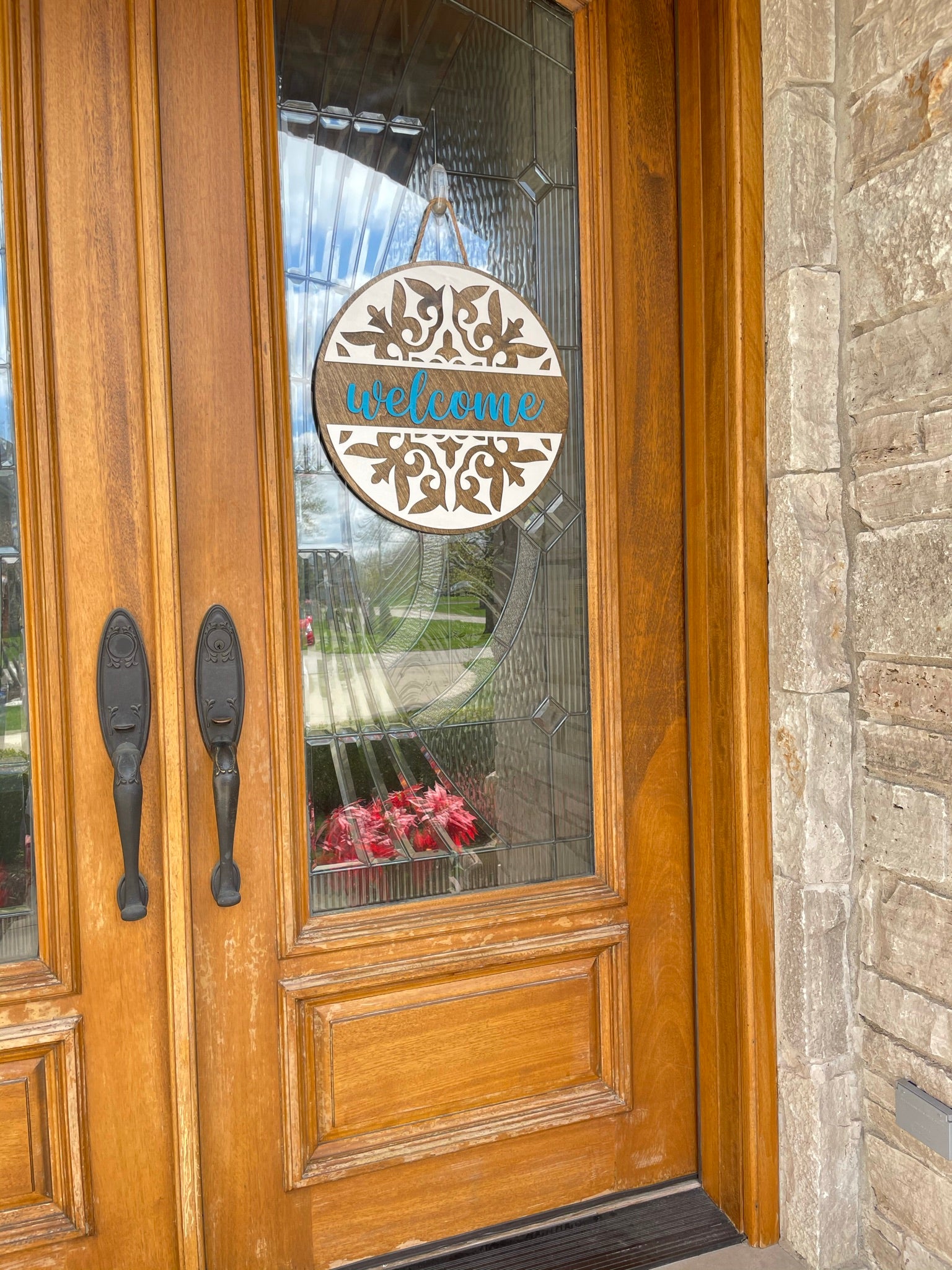 Due to the nature of wood, each door hanger may vary slightly in color and appearance (knots, wood grain, etc), adding character and charm.