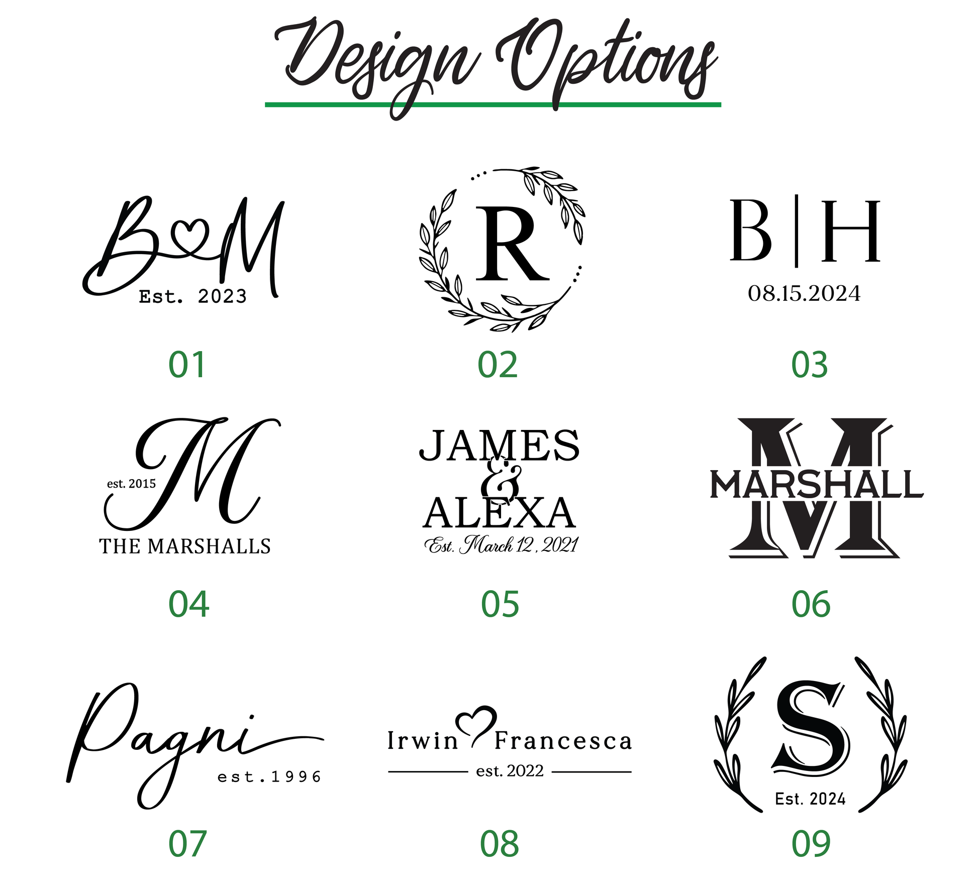 If you have a custom idea, logo, wedding monogram, etc. that you would like to use for your board, please send us an email at sales@deluxhubllc.com discuss the details of your design. Custom designs require extra time to create (and sometimes extra time to engrave depending on the detail) so they will incur an additional charge.