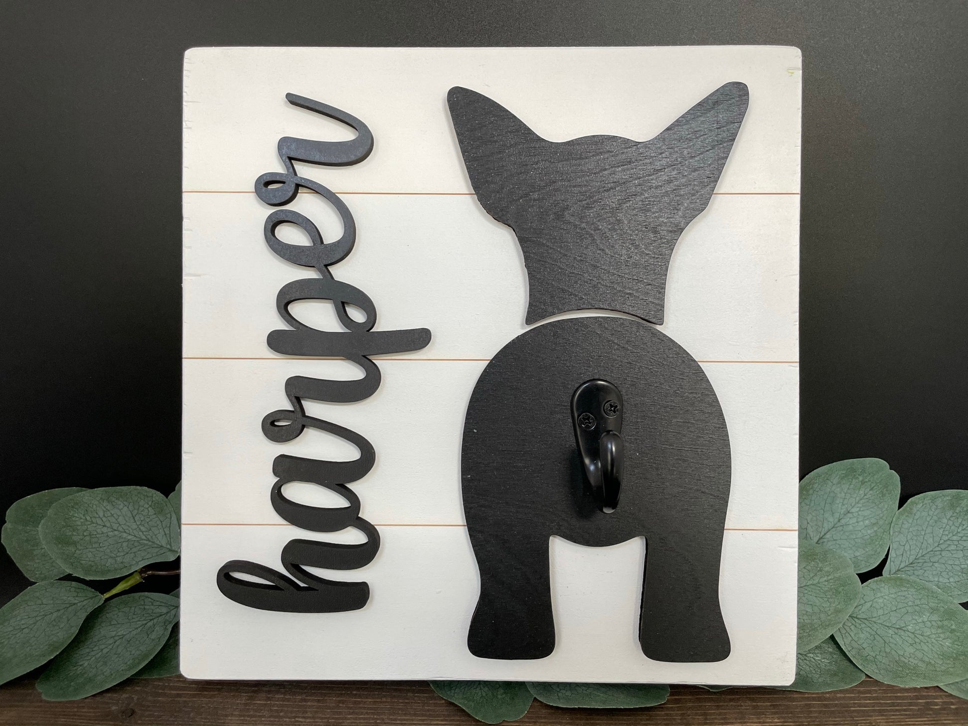 An adorable, custom way to keep your pup's leash organized and ready to go! Personalize it with your fur baby's name or opt for the classic "woof" – either way, it's a charming addition to any décor.