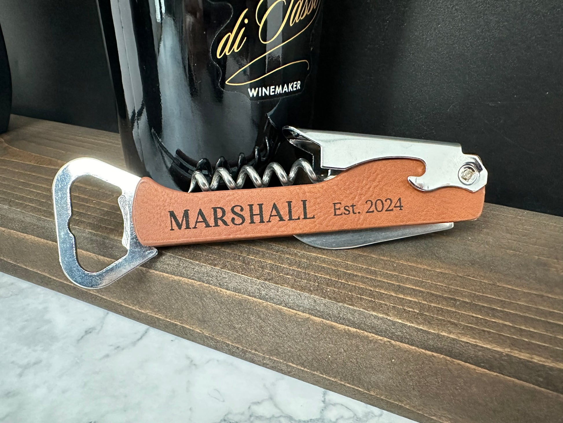 ✔ Metal multi-tool opener with a stylish vegan leather handle