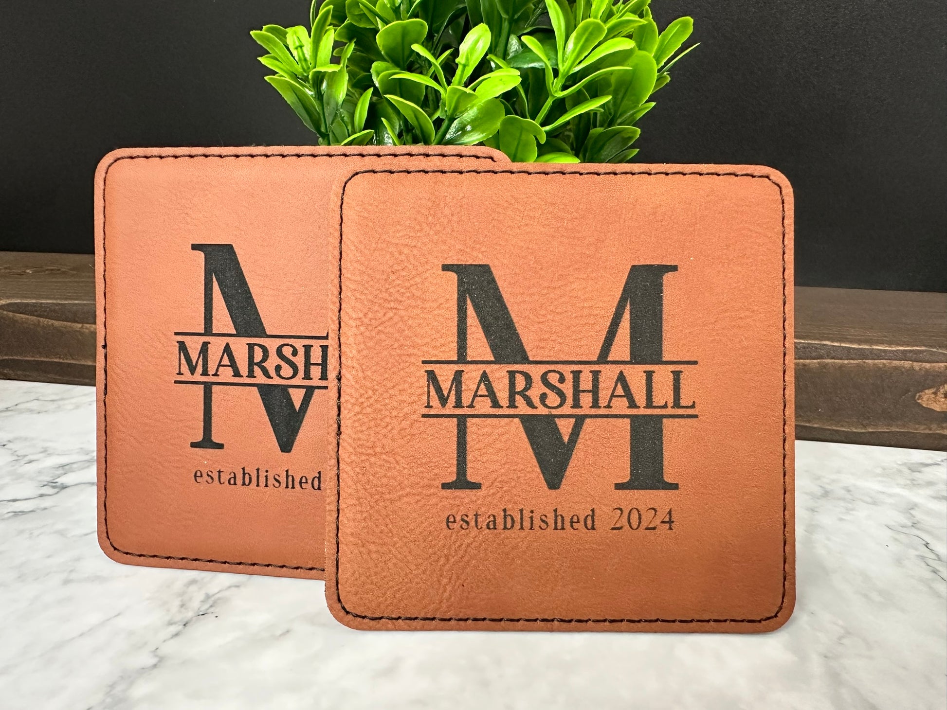 ✔ Two vegan leather coasters, 4" x 4", 1/8" thick