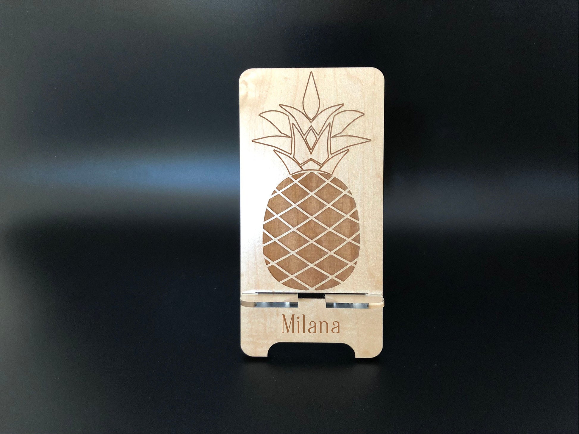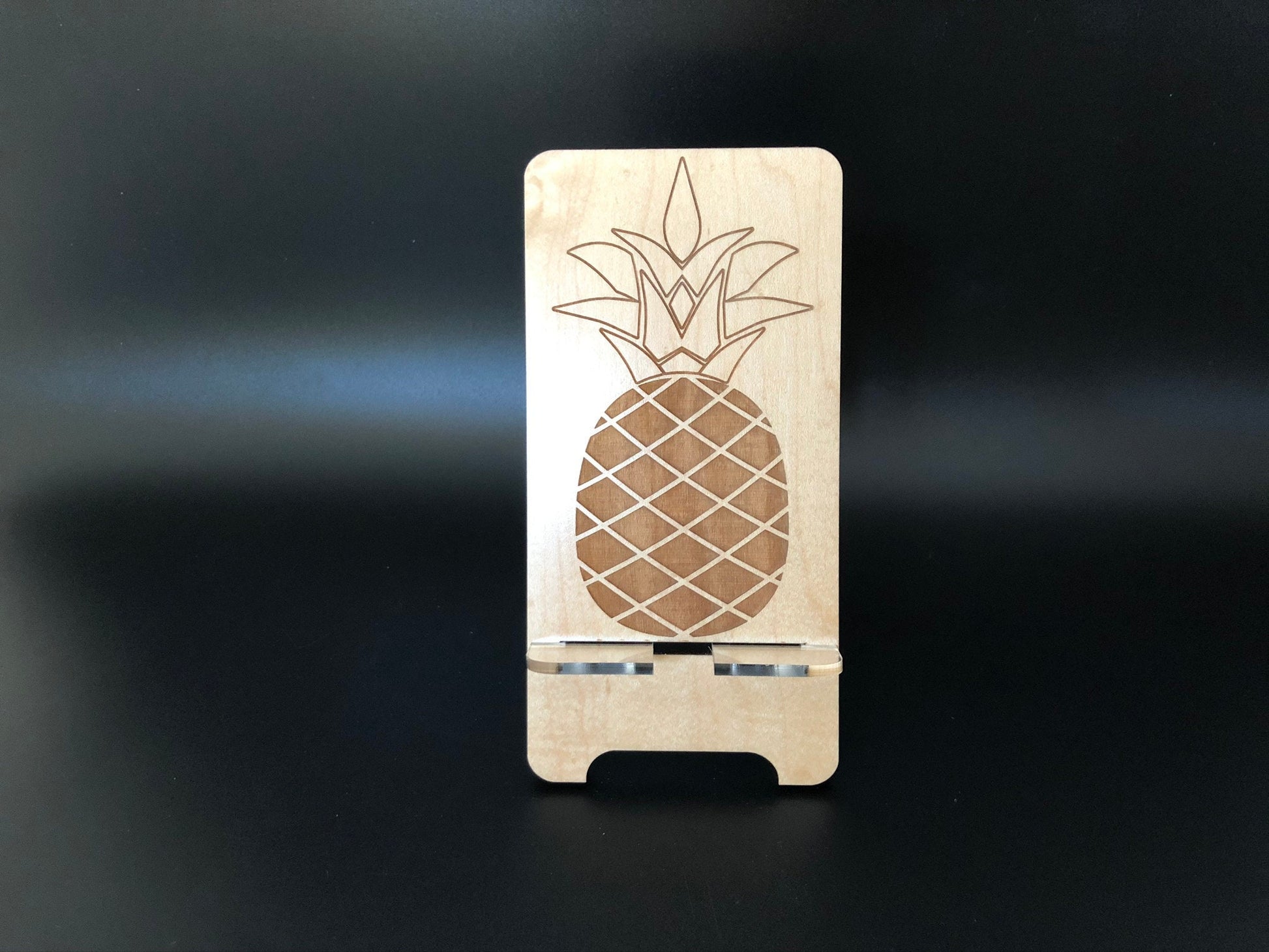 Pineapple Wooden Phone Stand | Customized Smartphone Holder | Personalized Docking Station | Stocking Stuffer, Birthday Gift, Desk Organizer
