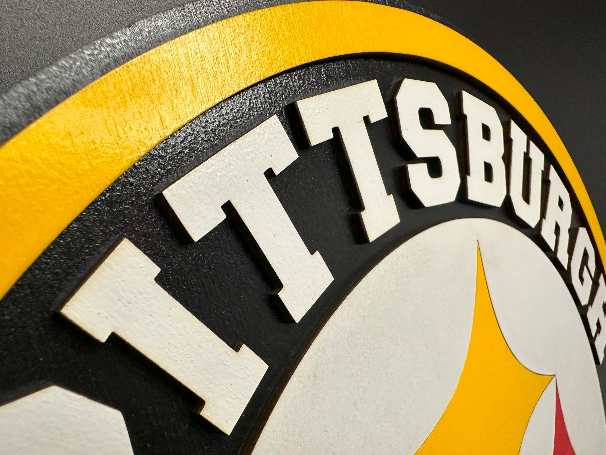 Steelers Strong: Elevate Your Fanhood with the Pittsburgh Steelers Wood Sign! đâŤď¸đ Our Pittsburgh Steelers Wood Sign is laser cut in the iconic shape of the Steelers' fierce logo. This sign is the perfect size to command attention on your wall, door, or in your man cave. Let everyone know which team you stand with, whether it's game day or not!Â