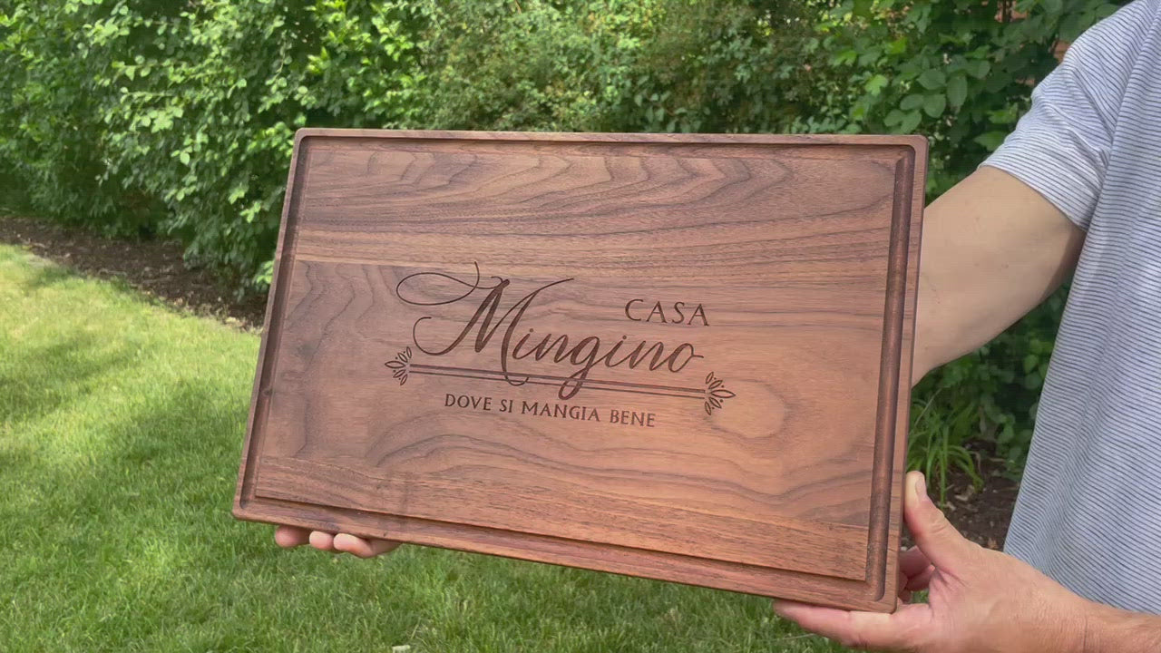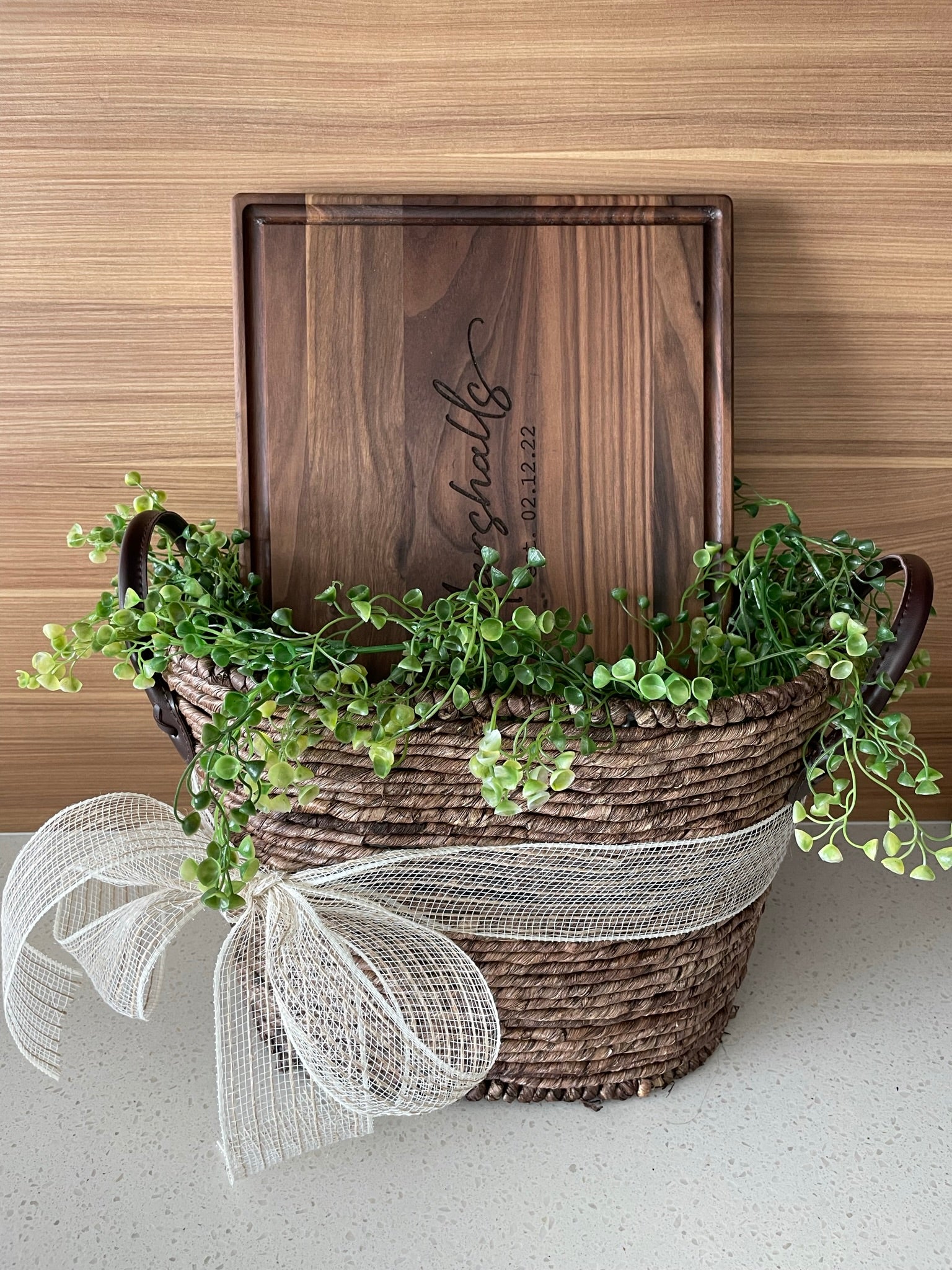 Add a hint of you and accent your home with this engraved solid walnut wood cutting board. Serve your favorite entrée in style or display it for all to appreciate. The perfect addition to any kitchen.