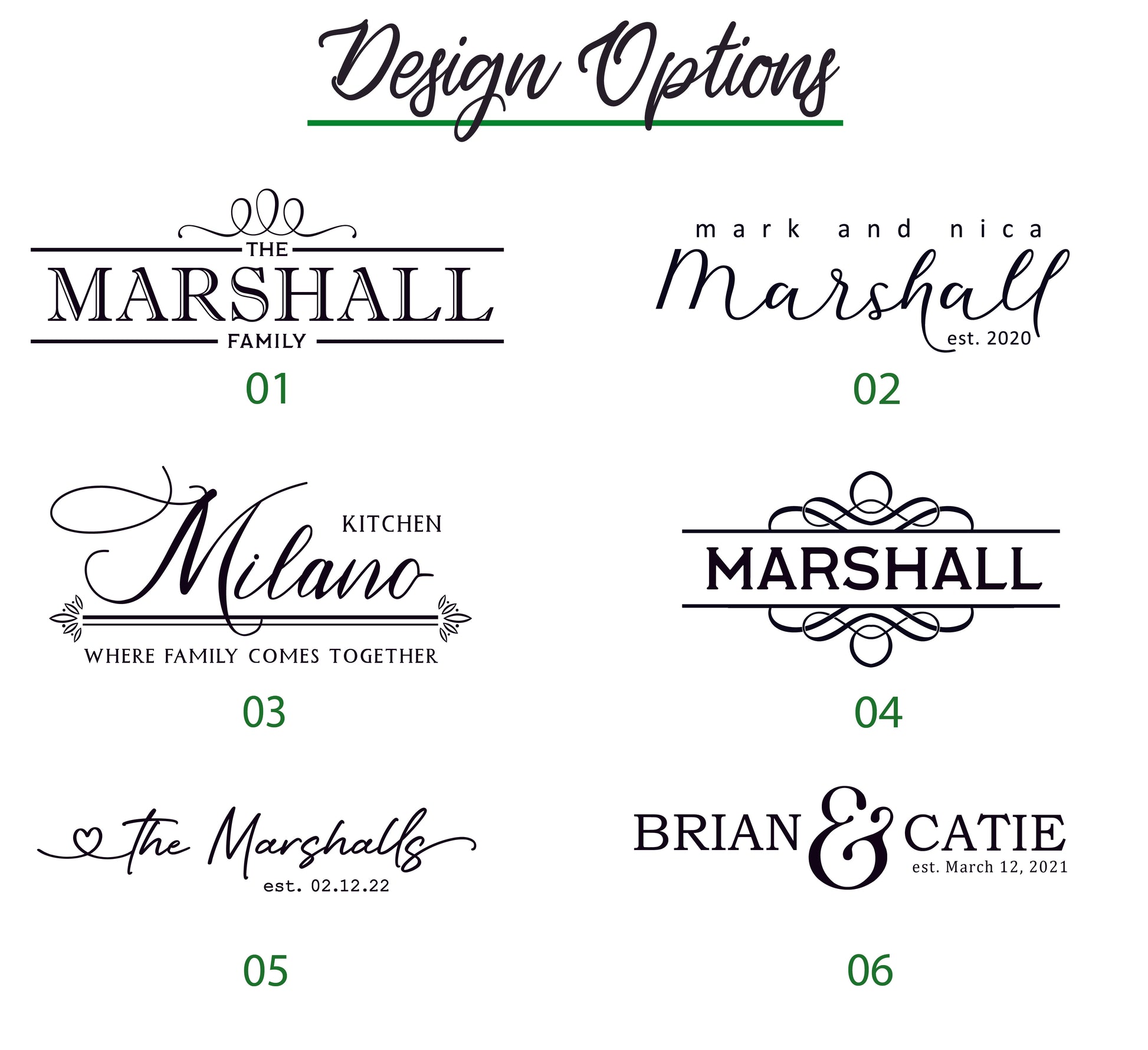 If you have a custom idea, logo, wedding monogram, etc. that you would like to use for your board, please send us an email at sales@deluxhubllc.com discuss the details of your design. Custom designs require extra time to create (and sometimes extra time to engrave depending on the detail) so they will incur an additional charge.
